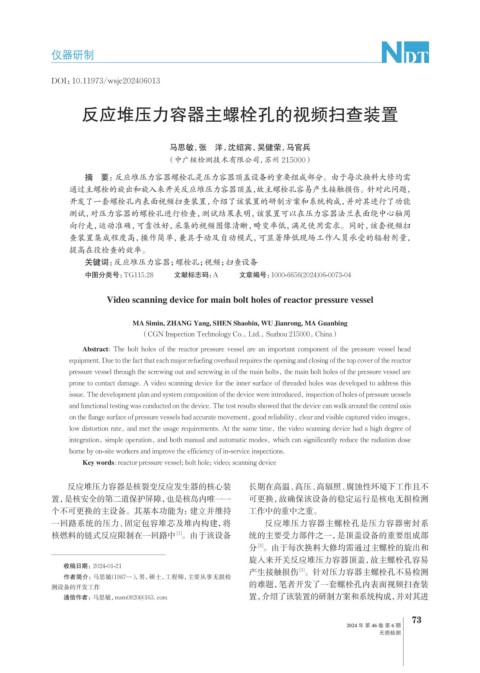 关键词:反应堆压力容器;螺栓孔;视频;扫查设备
