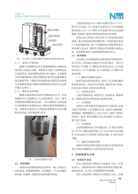 摄像头升降模块负责实现视频摄像头在螺纹孔 要具有以下功能:① 螺栓孔检查状态显示;② 设备