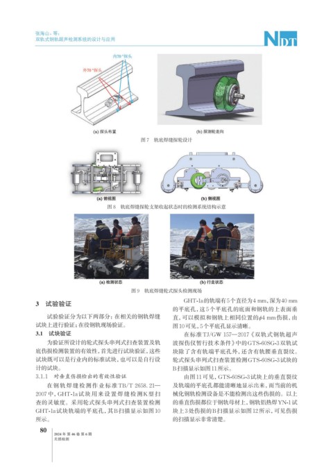 为验证所设计的轮式探头串列式扫查装置及轨 波探伤仪暂行技术条件》中的GTS-60SG-3双轨试