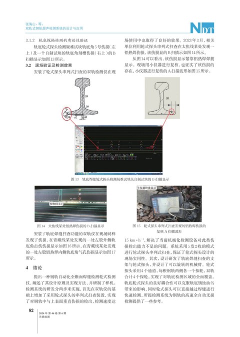 3.1.2 轨底探轮检测的有效性验证 场使用中也取得了良好的效果。2023年3月,相关