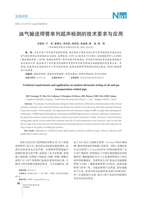 摘 要:首先介绍了串列超声检测的原理,然后简述了国家石油天然气管网集团及中国石油天