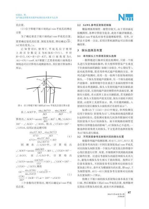 (2)位于焊缝下坡口处的φ3 mm平底孔的理论 螺旋埋弧焊钢管一般管径较大,由于其切面近