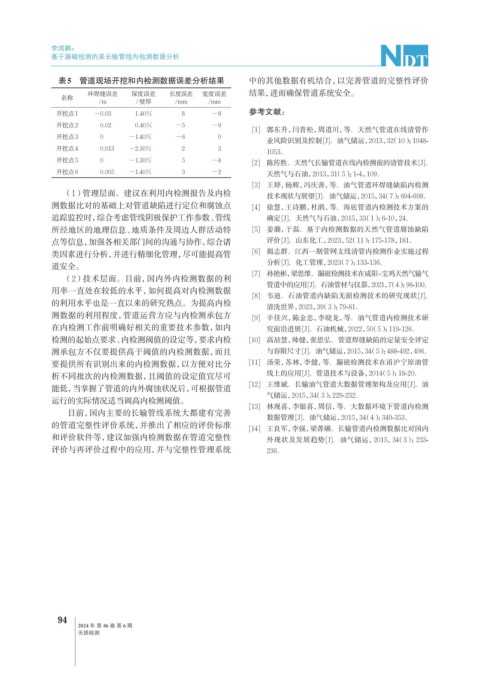 表5 管道现场开挖和内检测数据误差分析结果 中的其他数据有机结合,以完善管道的完整性评价