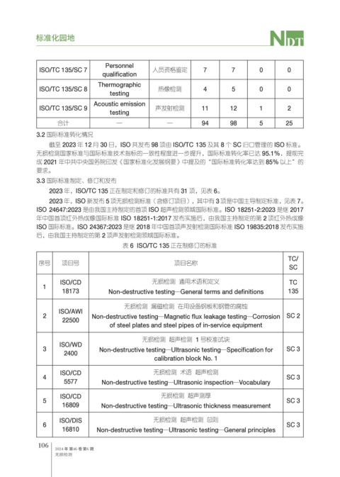 2023 年,ISO 新发布 5 项无损检测标准(含修订项目),其中有 3 项是中国主导制定标准,见表 7。