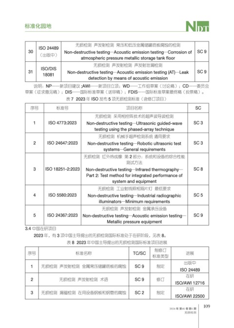 2023 年,有 3 项中国主导提出的无损检测国际标准处于在研阶段,见表 8。