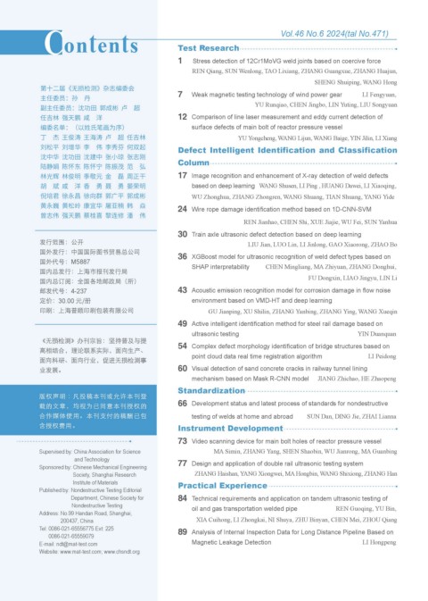 载的文章,均视为已同意本刊授权的 66 Development status and latest process of standards for nondestructive