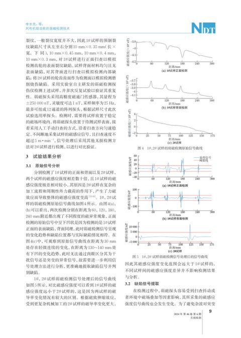 感应强度远小于 2# 试样的,这是因为两试样的磁 在检测过程中,弱磁探头容易受到扫查抖动或