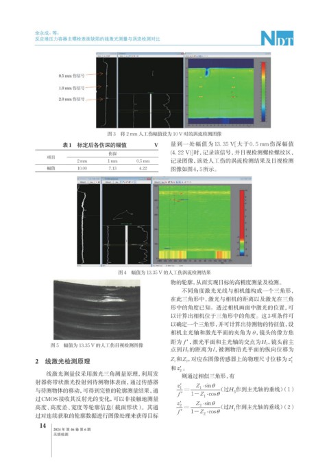 表1 标定后各伤深的幅值 V 量到一处幅值为 13. 35 V[大于 0. 5 mm伤深幅值