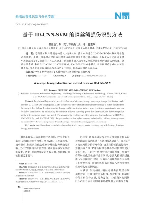 基于 1D-CNN-SVM 的钢丝绳损伤识别方法