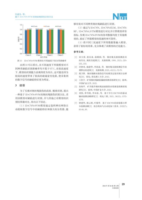 图 10 1D-CNN-SVM 模型在不同速度下的分类准确率 的历史、现状及趋势[J].无损检测,1999,21(5):220-