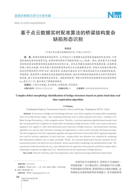 data was proposed for the recognition of complex defect morphology in bridge structures. Firstly, laser scanners and sensor