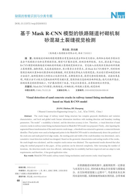 关键词:Mask R-CNN模型;铁路隧道;衬砌机制;砂混凝土裂缝;视觉检测