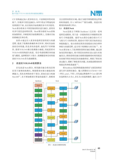 作,使得YOLOv8难以检测微小缺陷,因此需要对 Neck部分加入了更多跨阶段特征融合策略,通过添