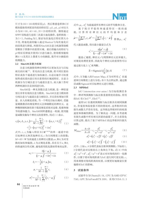 式中:t,x 为输入特征X∈R C*H*W 的单一通道中的 PDIoU = M AB - c 1 w 2 + 1 2 - c 1 w 2 +h 2 h 2 (8)