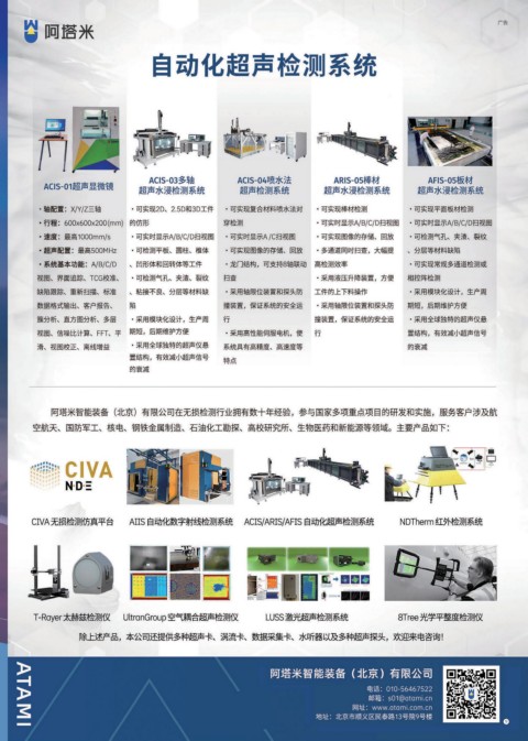 广告 EXPLORER 轻巧坚固,易于集成 与 ® 合作 藏身其中的Explorer 用于风电叶片维护的 高级机器人 强大而紧凑的 PAUT & FMC/TFM ▶ 轻便耐用的仪器,非常适合机器人集成 ▶ 高数据吞吐量 ▶ 从��/��到��/���通道的紧凑型配置 以应用为中心的软件 腐蚀测绘、焊缝检测、裂纹检测等! 欧斯派珂无损检测技术(上海)有限公司 服务热线:���-���-���� 邮箱:zhipeng.li@tpac-ndt.com www.tpac-ndt.com 9