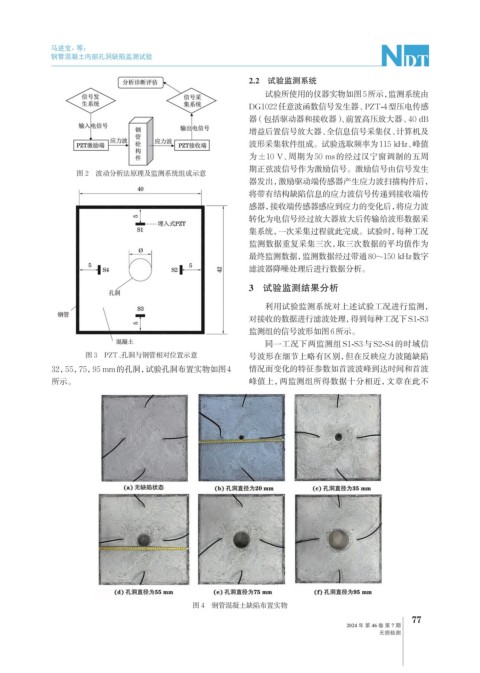 图 3 PZT、孔洞与钢管相对位置示意 号波形在细节上略有区别,但在反映应力波随缺陷