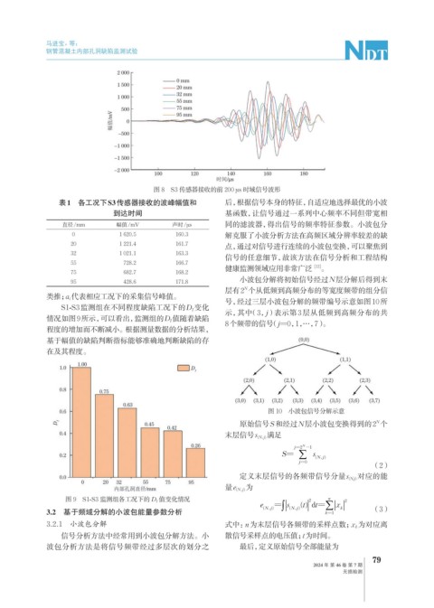 直径/mm 幅值/mV 声时/μs 同的滤波器,得出信号的频率特征参数。小波包分