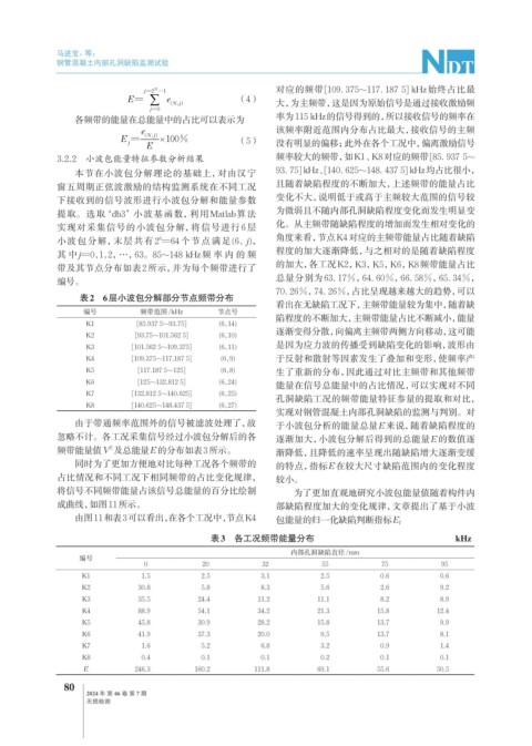 小波包分解,末层共有 2 =64 个节点满足(6, j), 角度来看,节点K4对应的主频带能量占比随着缺陷