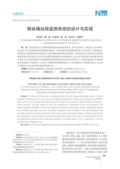 Key words: steel wire rope; leakage detection; remote monitoring; signal processing; LabVIEW; Flask; Vue.js