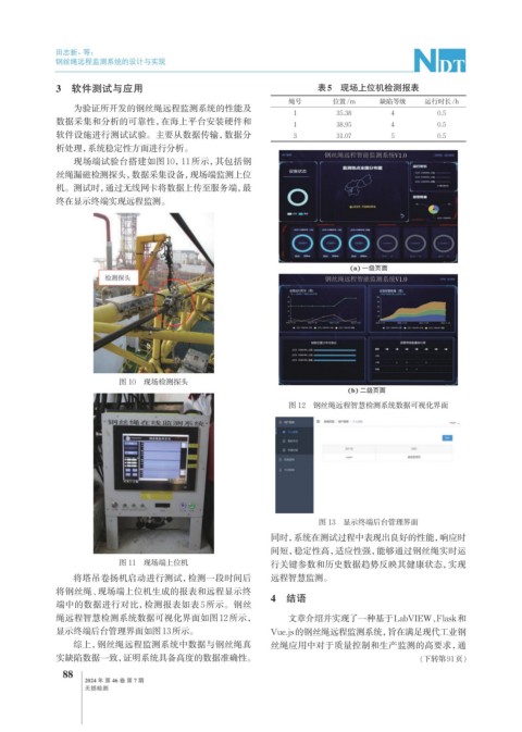 绳远程智慧检测系统数据可视化界面如图12所示, 文章介绍并实现了一种基于LabVIEW、Flask和