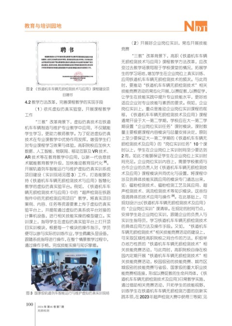 对专业课程学习效果与体验,高职院校应加快大 损检测技术及应用》的“岗位实训任务”10 个课