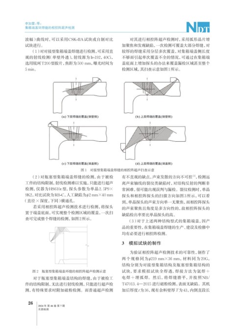 (1)对对接型集箱端盖焊缝进行检测,可采用直 较厚的焊缝采用分层多次覆盖,对集箱端盖侧长度