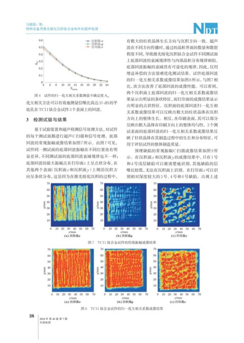 图 8 TC11 钛合金试件的归一化互相关系数成像结果