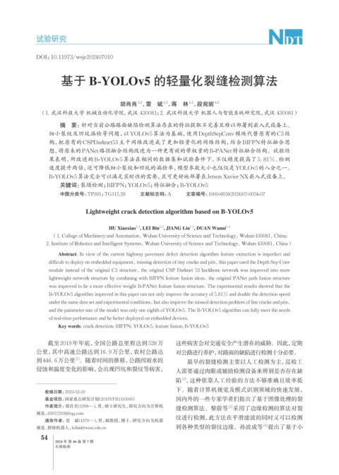 关键词:裂缝检测;BIFPN;YOLOv5;特征融合;B-YOLOv5