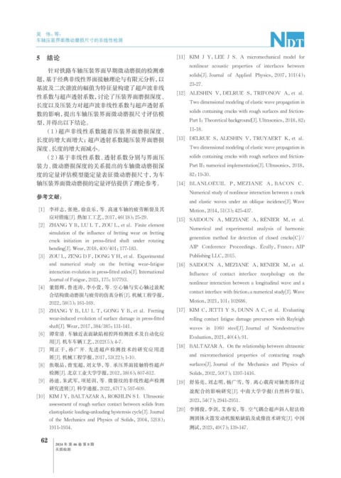 装力、微动磨损深度的关系提出的车轴微动磨损深 Part II:numerical implementation[J]. Ultrasonics,2018,