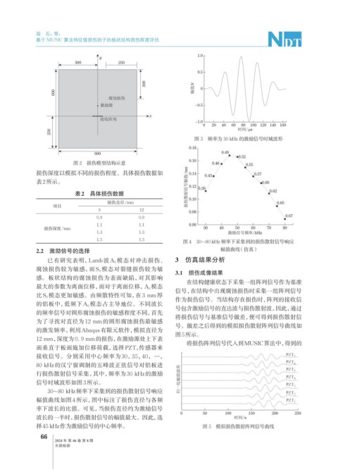 行损伤散射信号采集,其中,频率为 30 kHz的激励
