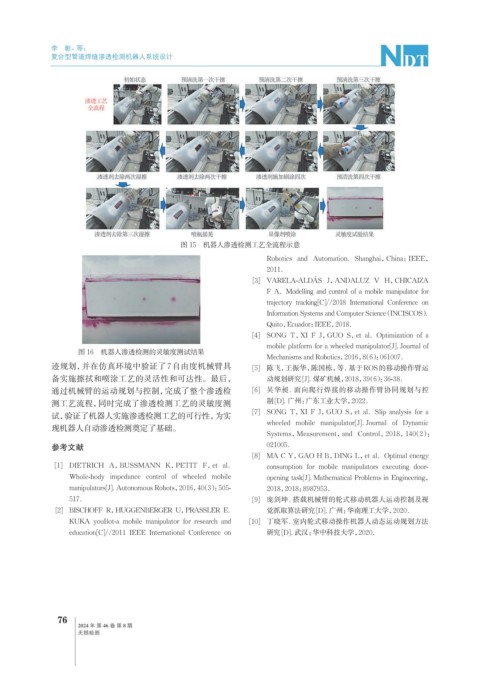 通过机械臂的运动规划与控制,完成了整个渗透检 [6] 吴华昶. 面向爬行焊接的移动操作臂协同规划与控