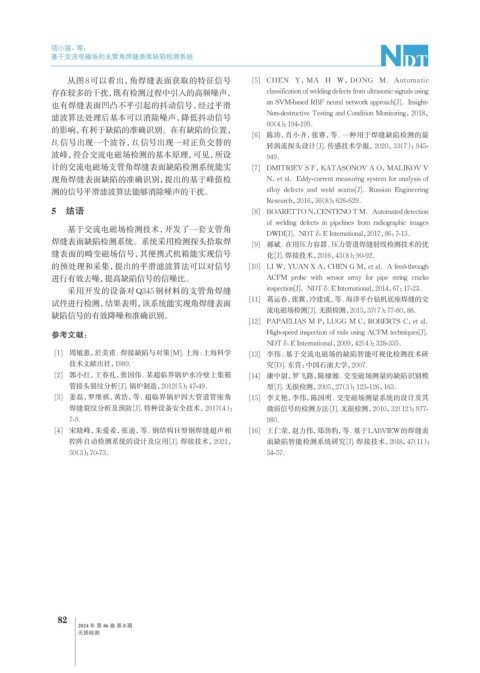 计的交流电磁场支管角焊缝表面缺陷检测系统能实 [7] DMITRIEV S F,KATASONOV A O,MALIKOV V