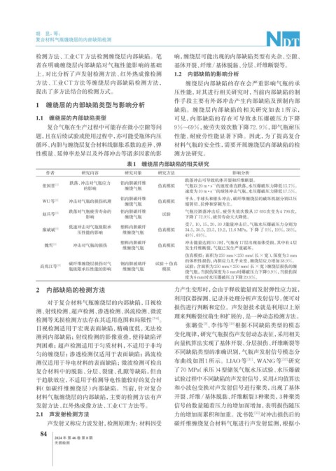 缺陷。缠绕层内部缺陷的相关研究如表 1 所示,
