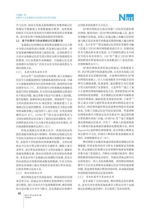 升与应用,如结合其他无损检测特征参数和磁记忆 应用较多的机器学习方法之一。