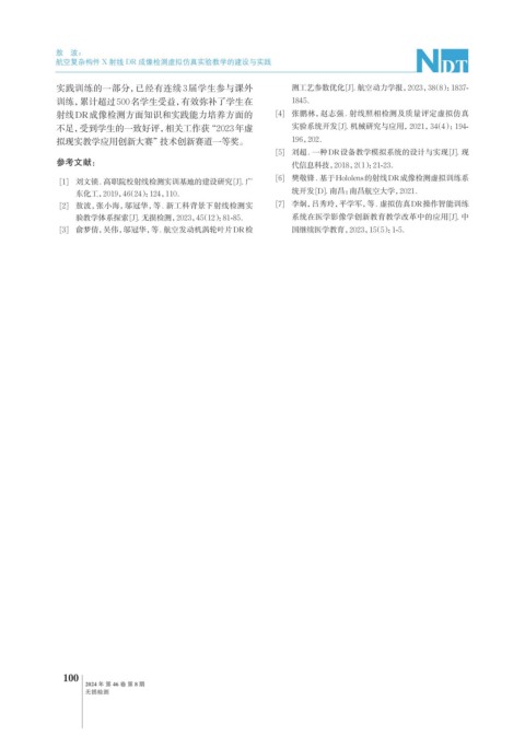 [2] 敖波,张小海,邬冠华,等. 新工科背景下射线检测实 [7] 李炯,吕秀玲,平学军,等. 虚拟仿真DR操作智能训练