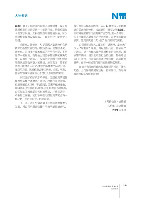 在应用方面,无损检测会更加快速、全面、可靠, 方面,公司将继续锚定目标,扎实前行,为可持