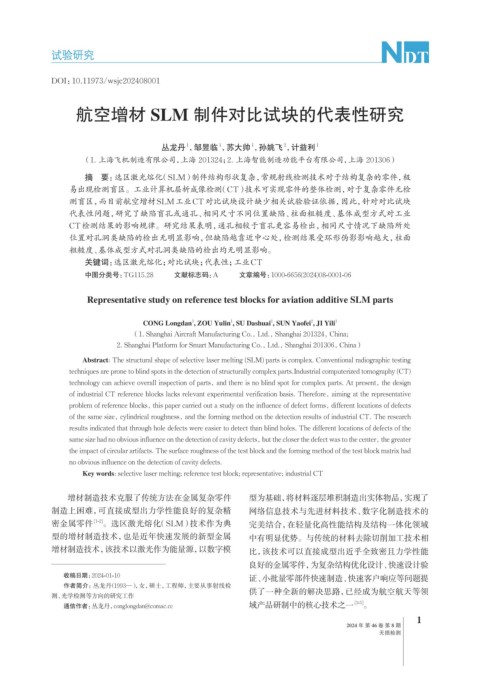 关键词:选区激光熔化;对比试块;代表性;工业CT