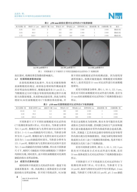 尺寸下,相同尺寸缺陷在不同柱面粗糙度CT图像中 依次对不同成型方式对比试件进行检测,直径