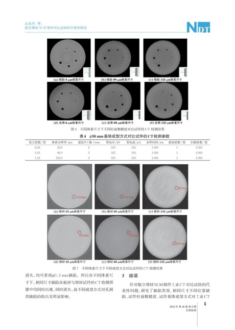 类缺陷的检出无明显影响。 陷、试件柱面粗糙度、试件基体成型方式对工业CT