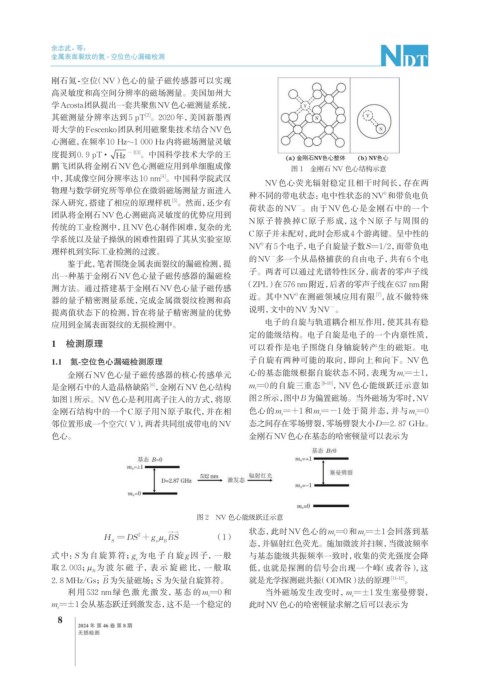 1.1 氮-空位色心漏磁检测原理 子自旋有两种可能的取向,即向上和向下。NV色