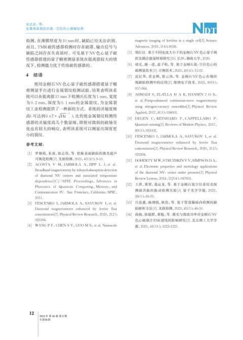 使用金刚石NV色心量子磁传感器搭建量子精 绳缺陷检测中的应用[J]. 微纳电子技术,2023,60(6):