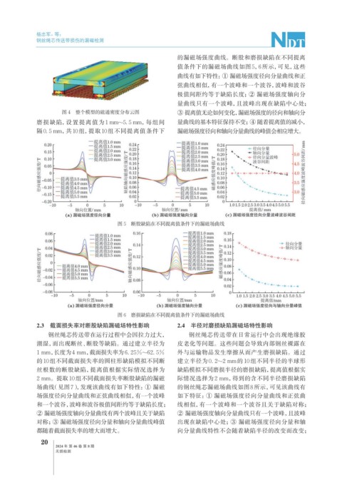 2 mm。提取10组不同截面损失率断股缺陷的漏磁 际情况选择为 2 mm,得到的含不同半径磨损缺陷