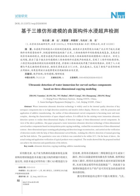 述问题,提出了基于插点仿形建模的三维曲面构件水浸超声检测技术,实现了三维外形轮廓重构、