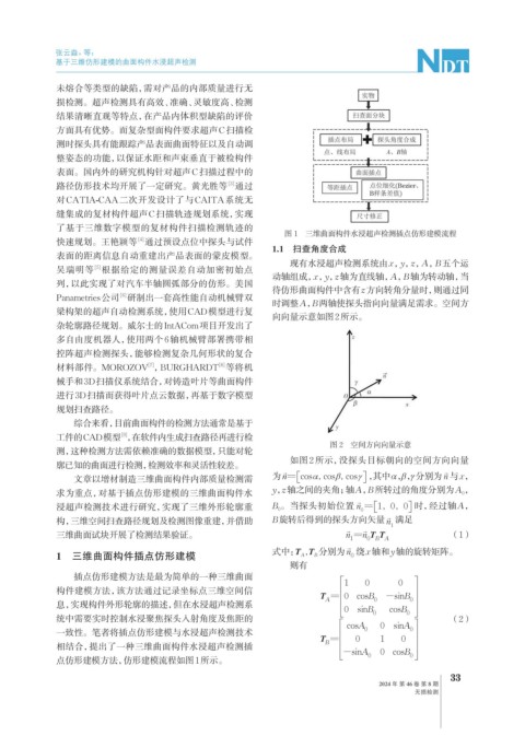 构,三维空间扫查路径规划及检测图像重建,并借助 B旋转后得到的探头方向矢量 n 满足