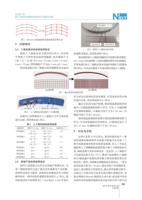 利用笔者提出的三维插点仿形建模算法完成试 图8所示, 可见该灵敏度下可成功检出预设人工缺陷。