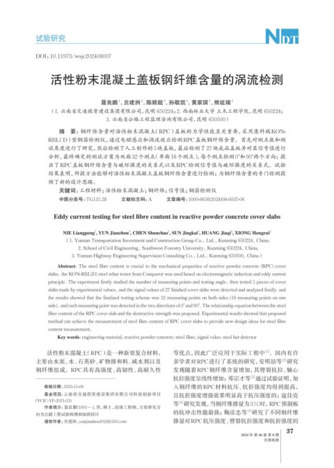 结果表明,所提方法能够对活性粉末混凝土盖板钢纤维含量进行检测;为钢纤维含量的专门检测提