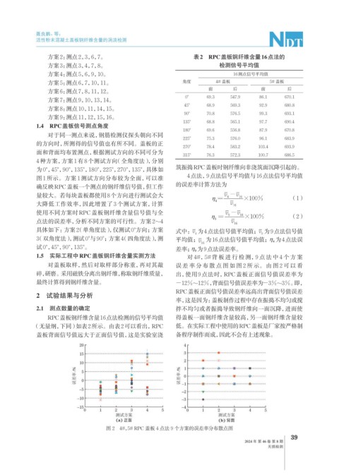 碎,研磨。采用磁铁分离出钢纤维,称取钢纤维质量, 出,使用 9 点法时,RPC盖板正面信号值误差率为