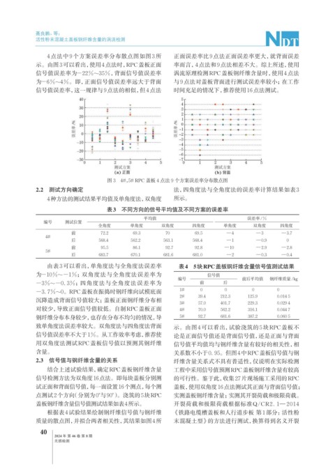 信号值误差率为-22%~35%,背面信号值误差率 涡流原理检测RPC盖板钢纤维含量时,使用4 点法