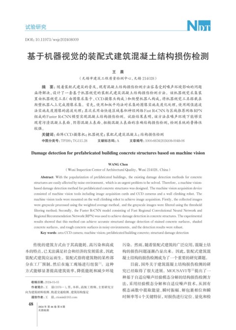 分在工厂预制,然后在施工现场进行组装 。这种 目前,国外关于建筑混凝土结构损伤检测的研