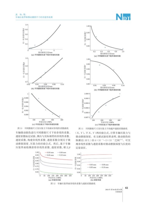 动磨损深度、压装力的经验公式。然后,基于车轴 现非线性系数与透射系数对微动磨损深度与长度的